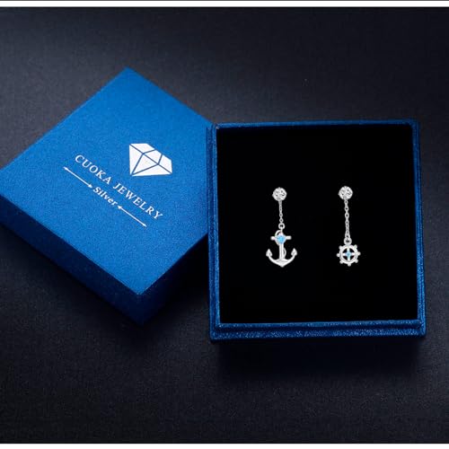 925 Sterling Silver Anchor Stud Earrings - Steering Wheel Thread Earring for Women Ocean Sea Minimalist Hypoallergenic Nautical Theme Jewelry with Box (Anchor)