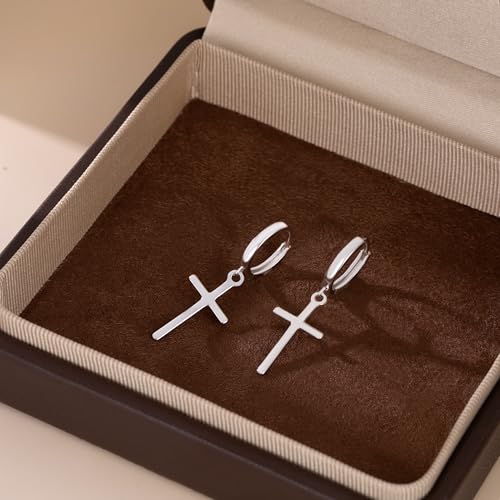 SLUYNZ 925 Sterling Silver Cross Hoop Earrings for Women Teens Cross Huggie Hoop Earrings Dangle