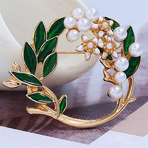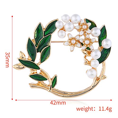 Pearl Flower Wreath Brooches for Women Men Girls Gold Tone Fashion Vintage Green Olive Leaf Hollow Garland Brooch Pins Bow Tie Necktie Dress Accessories Jewelry Birthday