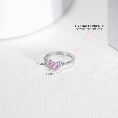 925 Sterling Silver Sweet Pink Cubic Zirconia Bow Ring For Girls & Teens Sizes 2-5 - Adorable and easy Polished Bow Ring With Pink CZ For Young Girls - timeless Detailed Rings For Girls Birthday Gift