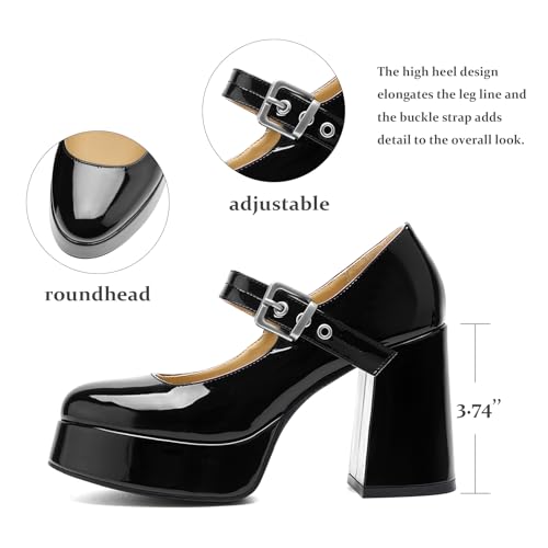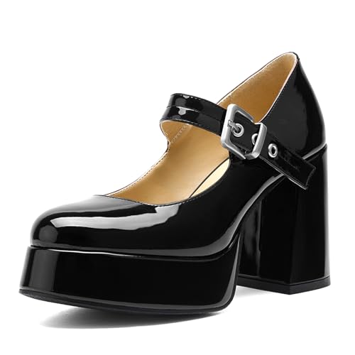 QIV Platform Mary Jane Heels for Women Chunky Block Heel Round Toe Closed Toe Dress Shoes
