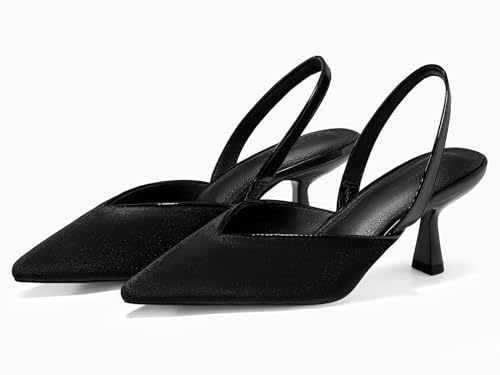 Coutgo Womens Slingback Kitten Heels Closed Pointed Toe Slip on Party Work Pumps Dress Shoes