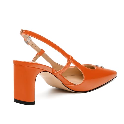 Sole material: RubberOuter material: SyntheticClosure type: BuckleDesign Points: contemporary patent leather upper with gunmetal metal round rivets, adding a few more points to your overall visual effect. The slingback design is easy to put on and take off, giving you a convenient experience.Heel Height: 2.56 inches mid-low chunky heel, comfortably increases height while allowing you to walk steadily and elegantly without your feet getting tired.Square Toe Design: The classic retro square toe won't squeeze your feet, bringing all-day comfort.Occasions: match with skirts, dresses, t-shirts, jeans, you can wear them at work, performance, party, date, shopping, vacation, travel, homecoming or daily casual.Tips: Due to the effect of shooting and monitor screen, the actual color of the shoes may be slightly different from the picture. If you have any questions, please feel free to contact us. Perfect for everyday use. first-class materials and excellent craftsmanship ensure long-lasting durability.