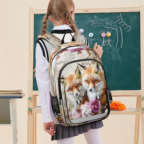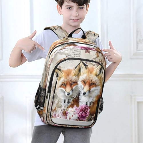Kids Backpacks School Daypack College Bag Bookbag for Boys Girls Watercolor Retro Fox