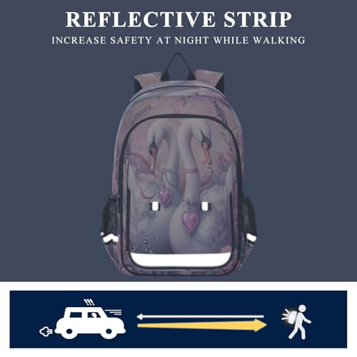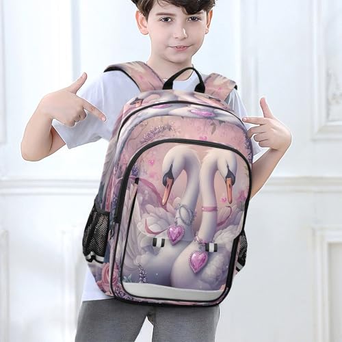 Kids Backpacks School Daypack College Bag Bookbag for Boys Girls Pink Swans Rose