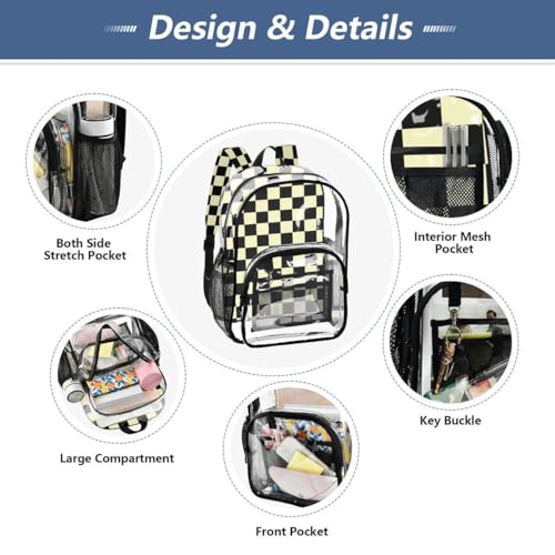 More information about ALAZA Black Yellow Checkered Plaid Clear Backpack PVC Transparent Bookbag Heavy Duty for Student Boy Girl Kids Adult School Travel Work