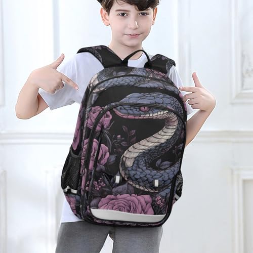 AIXIWAWA Kid's Travel Backpacks Floral and Snake Print for Boys Girls,Large Capacity Student School Bag with Reflective Stripe for Age 6 Above