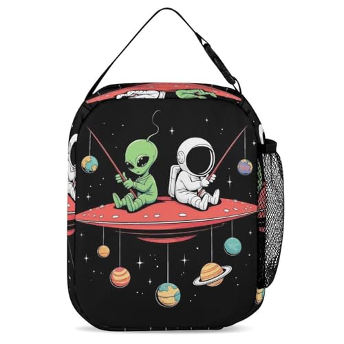 Travel Bookbag Set with Lunch Bags and Cosmetic Bag Alien And Astronaut Space Fishing Trip (2) Backpack with Lunch Box Storage Bag Backpack Bookbag Set