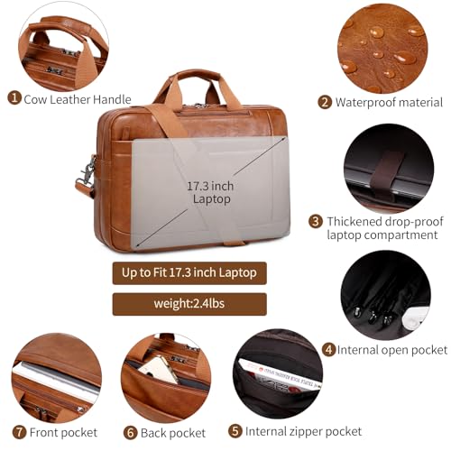 More information about Faux Leather Messenger Bag for Men | 17-17.3 Inch Leather Mens Laptop Bag Leather Briefcasen Convertible Backpack 3 in 1 Computer Handbags Work Bag Shoulder Crossbody Bag Office | Vintage Brown