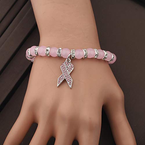 Why Choose CENWA Breast Cancer Awareness Bracelet Pink Rhinestone Ribbon Charm Beads Bracelet Breast Cancer Support Gift?