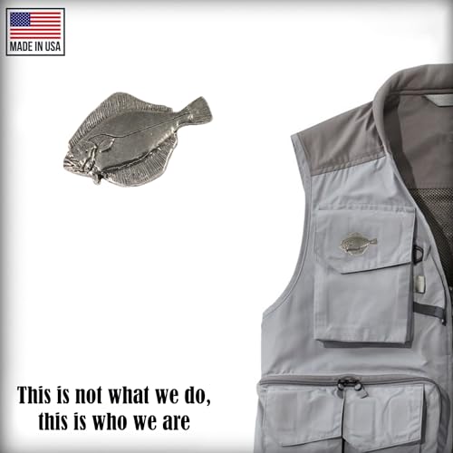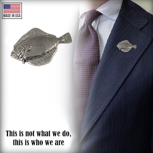 Flounder Fish Pin, Pewter, S063, 1 1/4”, Flatfish species. Demersal fish, Lapel, Hat, Pins, Brooch, Jewelry, Gift, 100% Handmade in the USA, Over 200 Fish Designs Available.
