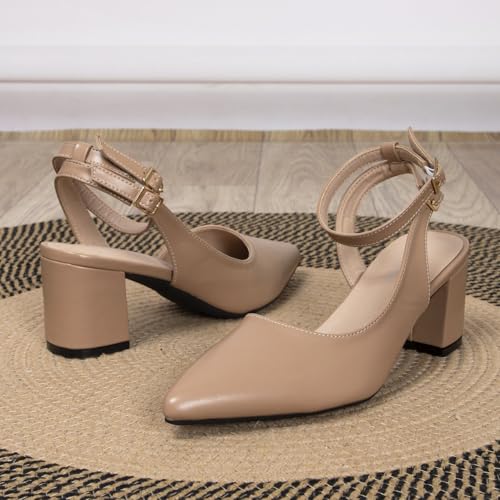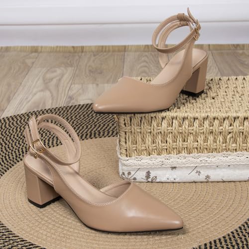 Women's Closed Pointed Toe Slingback Pumps with Adjustable Buckle Ankle Strappy Heels Low Short Block Chunky Heel Comfort Wedding Party Dress Work Shoes