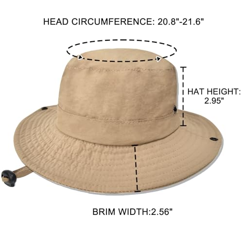 Fabric type: 100% NylonOrigin: ImportedClosure type: DrawstringFit type: RegularSUN PROTECTION&ANTI-SWEAT:Kids sun hat have excellent sun protection of UPF 50+,2.56/6.5cm wide brim,effectively shielding the head,eyes,face,and neck from intense sunlight.This helps block most harmful ultraviolet rays,ensuring children's safety while playing outdoors.The built-in sweatband effectively absorbs sweat to keep your head cool and dryWATER-RESISTANT&QUICK-DRYING:This kids bucket hat is made of quick-drying fabric,which is light and breathable.When exercising or encountering water,it can effectively repel water and quickly dissipate moisture,keeping you dry and comfortable at all times,which is very suitable for active children who like to play in the waterADJUSTABLE DESIGN:This adjustable kids safari hat circumference:20.8-21.6/53-55cm.One size fits 3 to 8 years kids.Equipped with an adjustable chin strap and adjustable drawcord,there is no need to worry about falling off,ensuring that this kids sun hat stays securely in placeLIGHTWEIGHT&FOLDABLE:The lightweight,foldable design allows you to easily fit this fishing hat into any backpack or bag for easy portabilityVERSATILE OUTDOOR USE:Ideal for various outdoor activities such as beach outings,travel,camping,hiking,boating and fishing,this sleek beach hat guarantees your child has a comfortable and enjoyable experience in the great outdoors Perfect for everyday use. top-grade materials and excellent craftsmanship ensure long-lasting durability.