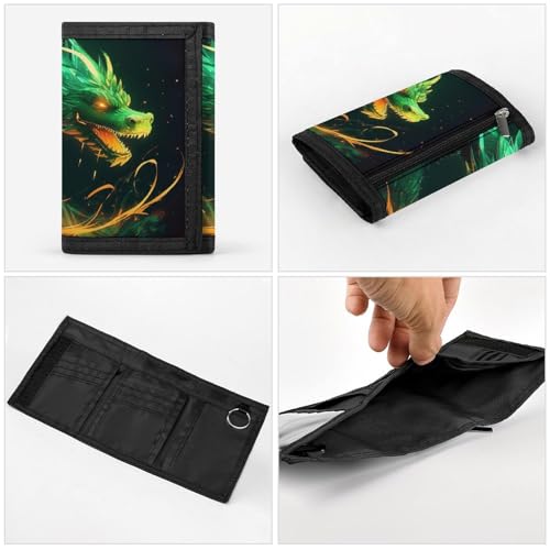 Brand: FZQVSGWColor: Green DragonMaterial: PolyesterStyle: ModernPattern: Flowers and animalsPremium Durability: Crafted from high-quality polyester, this Green Dragon trifold wallet for men ensures long-lasting performance and resistance to wear, perfect for daily use or travel.Smart Storage Layout: Our Green Dragon travel wallet Features 8 dedicated credit card slots, a front-facing ID window for quick access, a spacious main compartment, and a slip pocket for photos or receipts.Ultra-Slim & Lightweight: Measuring just 3.3 x 5 x 0.2 inches, this Green Dragon compact wallet fits effortlessly into pockets without bulk while holding all your essentials.Travel-Ready Design: The RFID-blocking ID window and organized card slots make it ideal for securing travel documents, credit cards, and IDs during trips.Style Meets Functionality: Combines a sleek, sophisticated aesthetic with practical storage, offering a minimalist yet versatile solution for latest men. Perfect for everyday use. first-class materials and excellent craftsmanship ensure long-lasting durability.