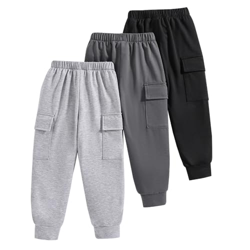 Boys Casual Pants-Solid Color gentle Trousers-Toddler Boys 3 Pack Sweatpants Set (3-7 Years)