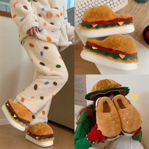 • COZY WINTER HAMBURGER SLIPPERS: These adorable hamburger shaped slippers are the excellent companion for chilly nights. The plush, toasty lining keeps your feet warm, Perfect for lounging around the house!