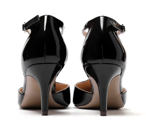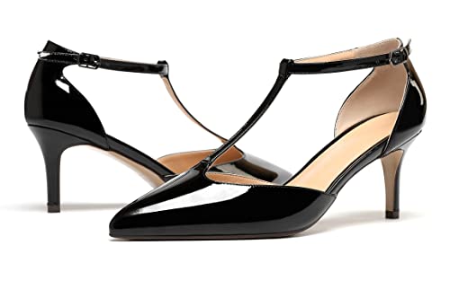 SAMMITOP Women's Kitten Heel Pointed Toe Pumps Ankle Strap Mid Heel T-bar Dress Shoes