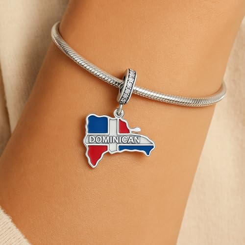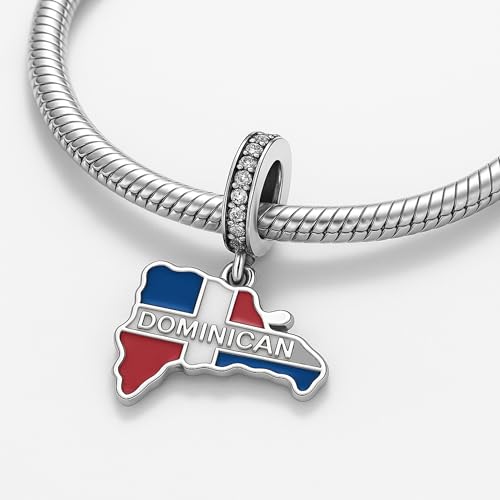 sizzling ! Dominican Republic Dangle Charm 925 Sterling Silver Gift For Birthday Christmas Mother Fit For Bracelet