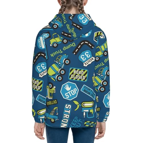 Dump Truck Kids Pullover Hoodies Boys Zip Up Sweatshirts Girls Athletic Clothes with Pocket