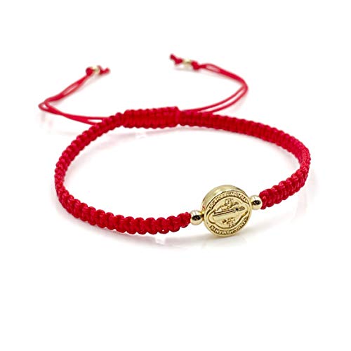 sizzling ! St. Benedict Medal on Handcrafted Adjustable Red Cord Braided Bracelet - Protection Jewelry for Women