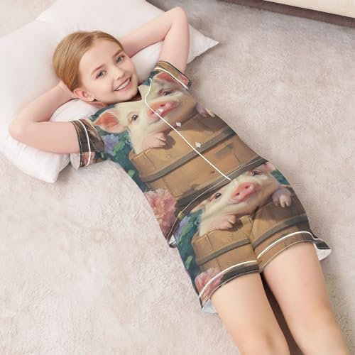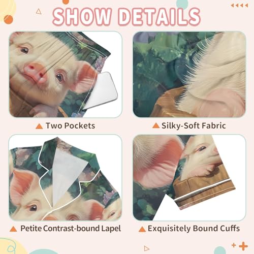 Why Choose ALAZA Cute Pig Blossom Flower Satin Pajamas Set Short Sleeve Button Down Sleepwear Summer Pjs 2 Piece?