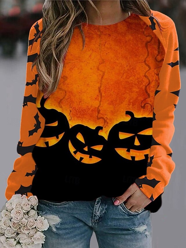 Why Choose Halloween Women's Pullover Sweatshirt Pumpkin Graphic Fashion Casual Long Sleeve Crew Neck Regular Tops Street Dailywear Print Blue Purple Orange Green Fall Winter?