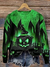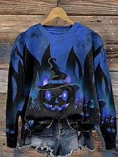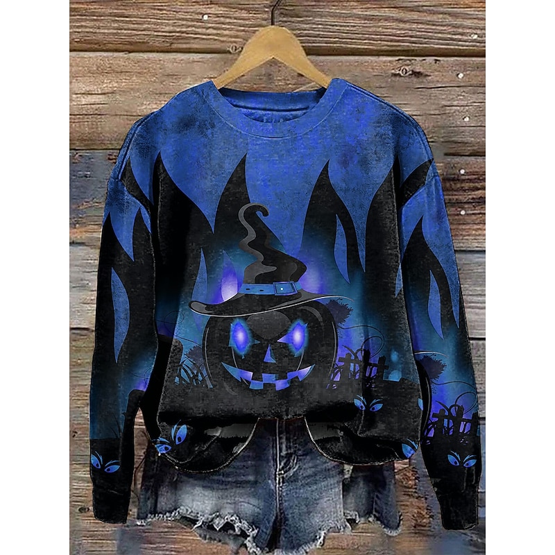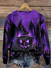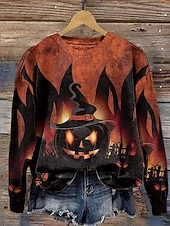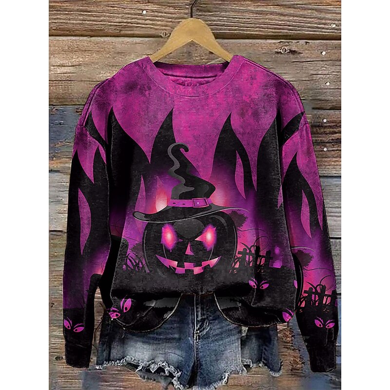 More information about Halloween Women's Sweatshirts Pumpkin Graphic Casual Long Sleeve Crew Neck Regular Tops Street Dailywear Casual Print Pink Blue Purple Orange Green Fall Winter