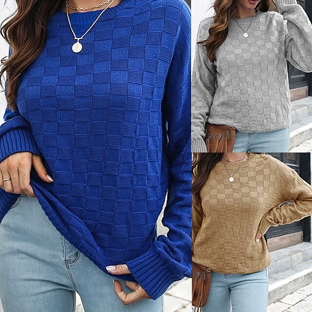 This Women's Pullover Casual Plaid Chunky Crew Neck Knitted Long Sleeve Regular Tops Knit Daily Holiday Going out Yellow Blue Fall Winter combines elegant design with practical functionality. Every detail has been carefully considered to ensure you get the premier possible experience. The premium construction means this product will serve you well for years to come.