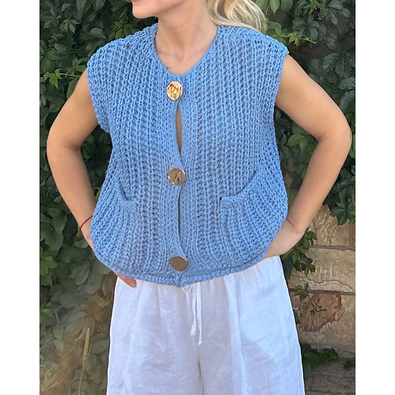 - Stay cool and cozy in this sleeveless cardigan
