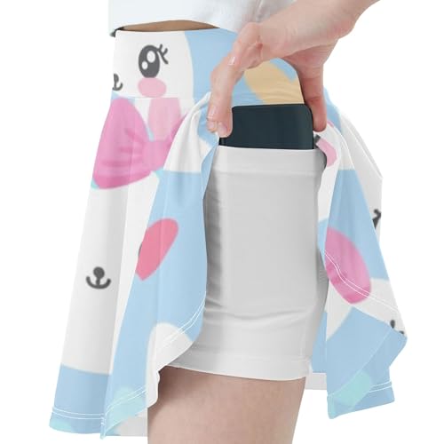 Joisal Cute White Bunny Pink Blue Bows Girls' Shorts Athletic Skorts Tennis Skirts for Kids Summer Pleated Skort 3t