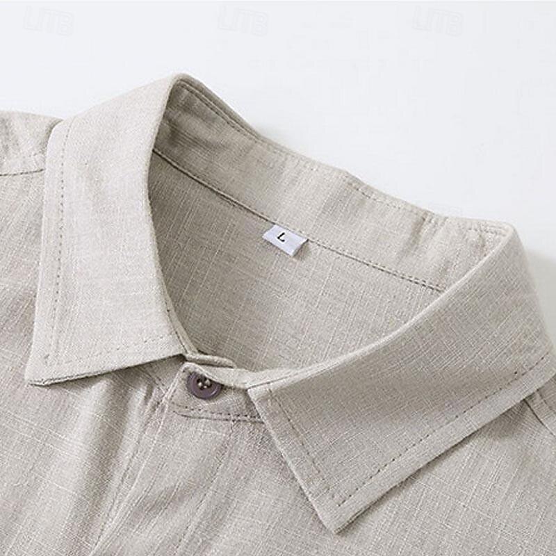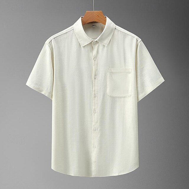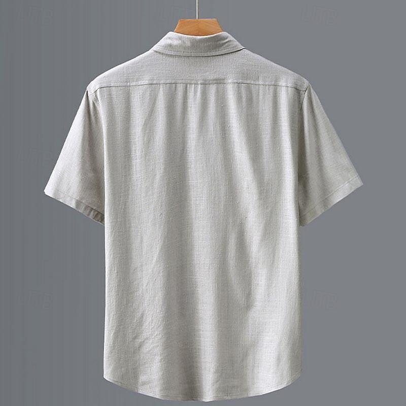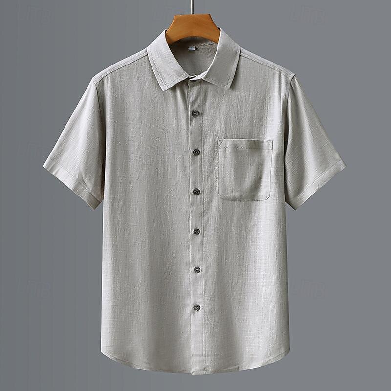 sizzling ! Men's Shirt Linen Shirt Casual Shirt Button Up Shirt Cotton Shirt Plain Vacation Street White Light Grey Dark Gray Beige Short Sleeve Turndown Summer Clothing Apparel Button-Down
