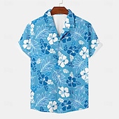 More information about Men's Floral Tropical Flowers Summer Hawaiian Shirt Aloha Shirt Short Sleeves Shirt Turndown Hawaiian Casual Resort Outdoor Vacation Street Blue Green S M L