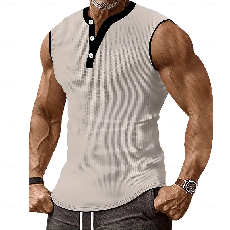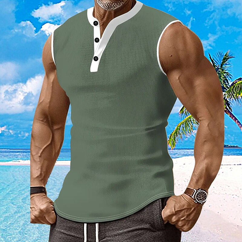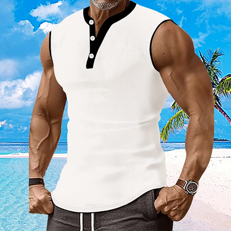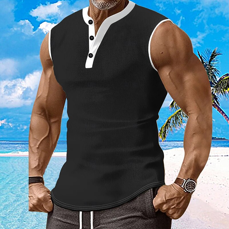 Why Choose Men's Waffle Tank Top Henley Shirt Vest Top Sleeveless Shirt Sleeveless Henley Summer Plain Fashion Designer Muscle Buttons Outdoor Gym Black White Dark Red Top Tee for Men?