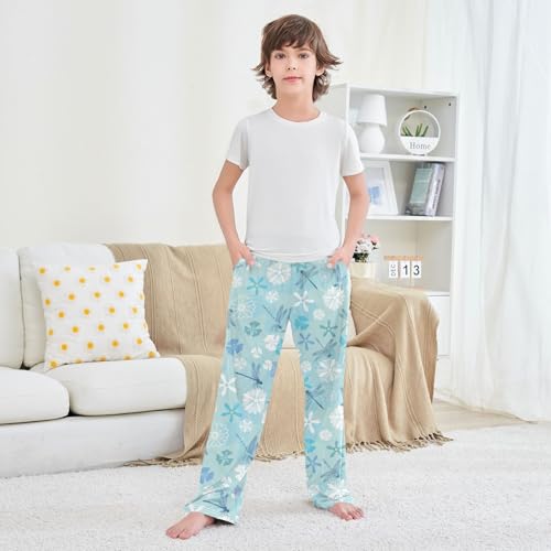 sizzling ! ZZXXB Dragonfly Spring Flowers Boys Long Pants velvety Trousers Elastic Waist Kids Lounge Bottoms with Pockets S-XL