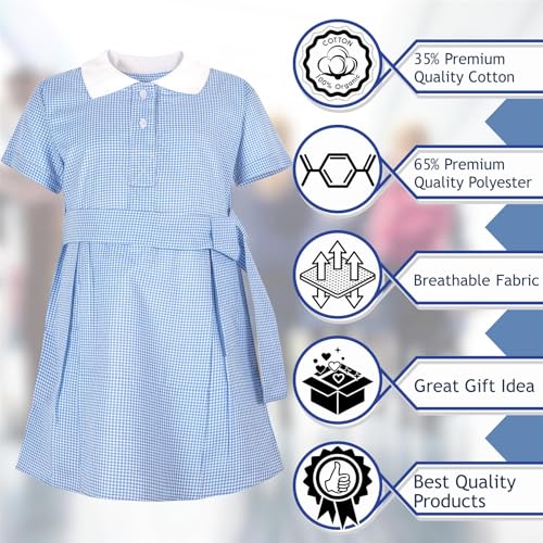 Fabric type: Polyester, CottonCare instructions: Machine WashClosure type: Pull OnNeck style: Collared NeckPREMIUM QUALITY MATERIAL: Our 2 Pack Uniform Gingham School Belted Dresses are made from premium-quality materials to provide your child with maximum comfort throughout the school day. The fabric is soft, breathable, and gentle against their skin, allowing them to focus on their studies without distractions. The dresses offer freedom of movement, ensuring your child can easily participate in various activities.SIZES TO ACCOMMODATE EVERY STUDENT: We understand that children come in different sizes, so our Uniform Gingham School Dresses are available in sizes 3-14 years. It has adjustable features such as buttons, and matching scrunchies. Each size is designed with growing children in mind, providing ample room for movement and flexibility.CLASSIC GINGHAM PATTERN FOR TIMELESS STYLE: Our Uniform Gingham School Dresses feature a classic gingham pattern that exudes timeless style. The traditional checkered design adds a touch of charm to the dress, creating a sophisticated and polished look. It is a perfect blend of nostalgia and modernity, allowing your child to make a sleek statement within the confines of their school uniform.EXPLORE A SPECTRUM OF CHOICES: Our Uniform Gingham School Dresses are available in a range of colors, including Blue, Red and Green. These versatile color options ensure your child can adhere to the school's dress code while expressing their individuality and personal style with a spectrum of choices.DURABLE CONSTRUCTION FOR LONG-LASTING USE: We understand that school uniforms need to withstand the demands of daily wear, which is why our Uniform Gingham School Dresses are constructed with durability in mind. The dresses are designed to withstand the rigors of school life, ensuring they remain in excellent condition even after multiple washes and extensive use. Reinforced stitching and high-quality materials guarantee long-lasting performance. Perfect for everyday use. finest materials and excellent craftsmanship ensure long-lasting durability.
