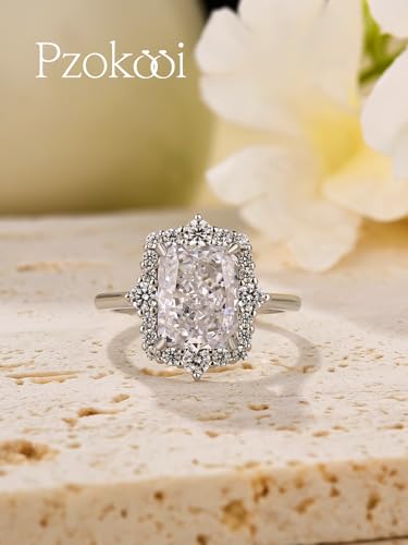 Ring size: 4.5Material: Sterling Silver and 18K Solid White GoldMetal type: Sterling SilverGem type: Cubic ZirconiaItem type name: Promise RingsThis elongated women's radiant cut engagement ring features an AAAAA grade cubic zirconia center stone that looks and feels like real diamonds.It's a great alternative to a precious diamond ring, and its elegant and minimal design will never go out of style.Perfect to give to that special someone, used as a promise ring, or just a backup for travel.The stones are set by hand instead of wax, which means more stronger. No worry about the stones falling out. The delicate cut shines brighter than real diamonds, has higher fire and a refractive index that catches light from every angle.All of our gold-plated products feature a thickened electroplating process, making them more durable. Made from solid sterling silver, they are free from harmful metals and hypoallergenic, ensuring safe wear. The smooth, simple band design enhances comfort, preventing any discomfort or irritation, making them perfect for daily wear.We are true to U.S. standard sizing, so you can confidently select your usual ring size. For wider band styles or sets of 3 or more rings, we typically recommend sizing up by half a size for a more plush fit.Every piece of jewelry from Pzokooi comes with complete packaging, including a ring box, a jewelry pouch, a ring sizer, a polishing cloth, and a plastic sealing bag, ensuring that your jewelry is properly stored and always shines brightly. Whether you're treating yourself or gifting someone special, itβs the perfect choice. Perfect for everyday use. premium materials and excellent craftsmanship ensure long-lasting durability.