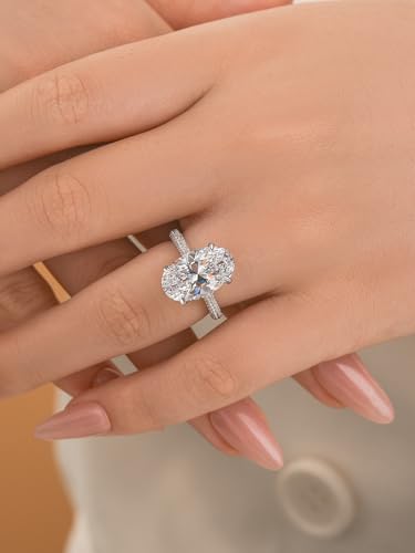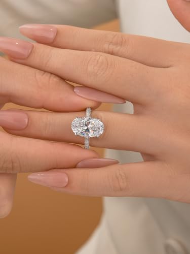 6.5CT Elongated Oval Cut Engagement Ring for Women, 925 Sterling Silver 5A Cubic Zirconia Simulated Diamond Promise Ring