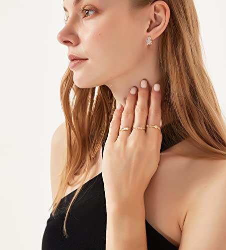 TIGRADE 1.5mm Eternity Ring 14k Gold Plated Three Cubic Zirconia Minimalist Engagement Ring Petite Round CZ Stacking Promise Ring for Women Size 3-11
