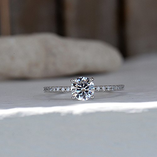 - Delicate, elegant, and timeless, this diamond engagement ring in 925 sterling silver features a half circle of sparkling petite pavΓ© diamonds to complement the center zirconia stone.