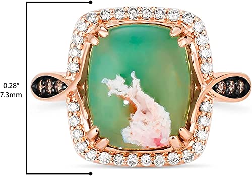 Ring size: 5Material: Gemstone, MetalMetal type: Rose-gold-plated-silverGem type: Green ChalcedonyItem type name: Statement RingUNMISTAKABLE ELEGANCE - This glamorous 14k rose gold plated 925 sterling silver halo statement ring by Le Vian features 4 2/3 carat cushion-shaped aquaprase cabochon, white topaz, and smokey quartz. This gorgeous ring is the high-profile statement piece you’ve been looking for. It’s sure to attract compliments at your next soiree or special event. The ring is available in sizes 5 to 10UNSURPASSED EXCELLENCE - Our exceptional quality standards set us apart, and our products never fail to impress. Featuring our unique proprietary designs crafted from authentic precious metals and an array of precious and semi-precious gemstones, this 100% 14k gold, nickel-free, hypoallergenic item is entirely safe for sensitive skin. We inspect each piece as it leaves our workshop, guaranteeing our pride in its craftsmanship. You're sure to appreciate the outstanding artistry in all our jewelryA THOUGHTFUL PRESENT - Our expert jewelers meticulously select each gemstone and place them in intricate settings, ensuring your jewelry surpasses expectations. Our items make ideal gifts for momentous occasions like an Anniversary, Birthday, Engagement, Valentine's Day, Mother's Day, Christmas, Wedding, Hanukkah, or simply to express your love and care. These timeless pieces are perfect for any woman, such as Bride, Bridesmaid, Fiancée, Wive, Girlfriend, Daughter, Granddaughter, and GrandmotherA UNIQUE TREASURE FOR ALL - Le Vian, established to showcase authentic gemstones' inherent splendor, offers an exceptional selection for every occasion. Browse our collection to discover the perfect gemstone for birthdays, anniversaries, astrological Zodiac signs, and Hebrew tribes. Our handcrafted jewelry, created by master artisans with a wealth of experience, carries significant meaning and narratives. Explore the fascinating history and tales associated with these stunning stones with usElegant Gift Box: Each piece of our stunning jewelry is beautifully presented in an elegant gift box, making it the perfect choice for a timeless gift. We are committed to offering exceptional quality Perfect for everyday use. premium materials and excellent craftsmanship ensure long-lasting durability.
