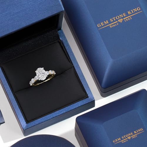 Gem Stone King 2-2.9 Cttw 14K Two Tone Gold IGI Certified Oval White Lab Grown Diamond Engagement Ring For Women | E-F Color | VS1-VS2 Clarity | Size 5-9
