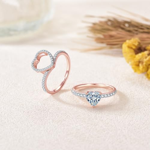 1CT Center Heart Cut Moissanite Wedding Ring Set for Women,18K Rose Gold Platinum Plated Stackable Bridal Sets 925 Sterling Silver Halo Moissanite Engagement Ring Sets Gift for Anniversary Wedding