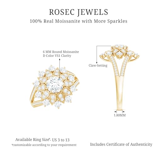 Certified Moissanite Flower Engagement Ring, D-Vs1 Quality, 6 mm Round Moissanite Floral Ring - Ready to Gift
