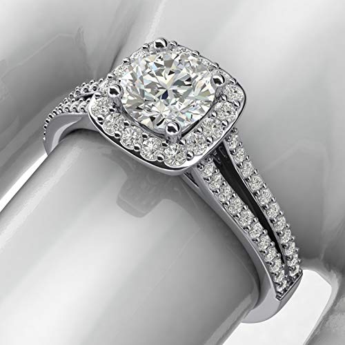 More information about Women Solid Sterling Silver Simulated 1.0ctw Brilliant Round Diamond Engagement Ring Cushion Shape Halo Split Shank