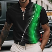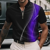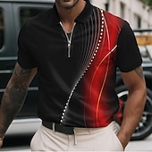 sizzling ! Men's Geometic Line Zip Polo Shirts Short Sleeve Polo Shirts Collared Shirts Business Casual Business Athleisure Wear to work Daily Wear 3D Print Summer Red Blue Purple