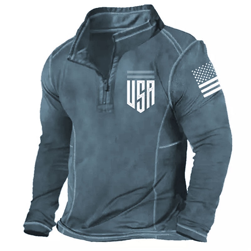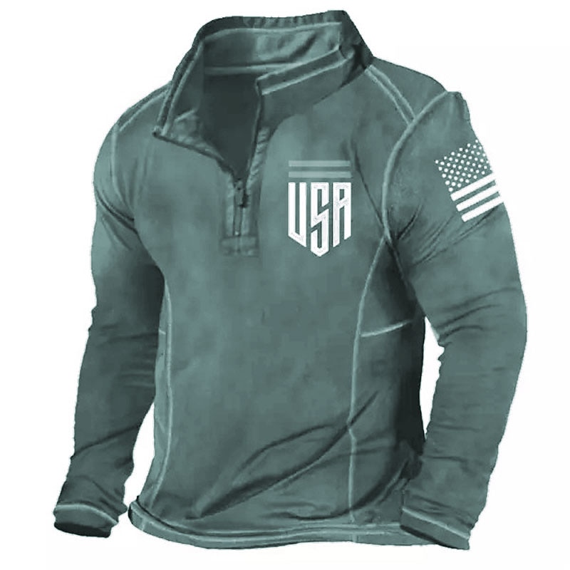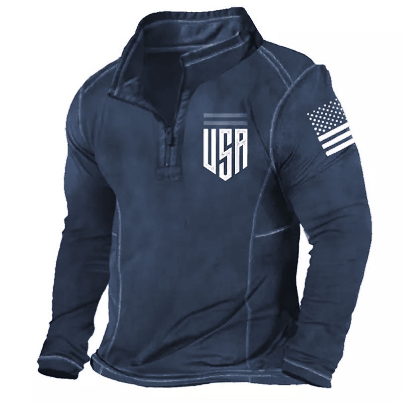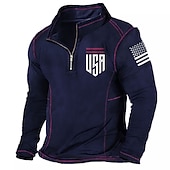 More information about Men's Long Sleeve Quarter-Zip USA American Flag Patriotic Pullover Shirt
