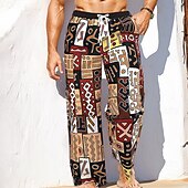 More information about Men's Geometric Patchwork Ethnic Trousers Baggy Pants Casual Pants Mid Waist Vintage Retro Outdoor Vacation Holiday Drawstring Elastic Waist Wide Leg Summer Spring 3D Print Brown