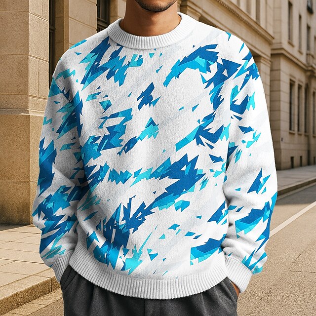 More information about Men's Color Block Pullover Sweater Jumper Knitwear Crewneck Casual Vacation Daily 3D Print Knitting Keep toasty Long Sleeve Spring Fall Winter Blue Purple Green