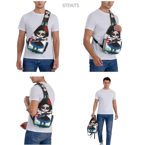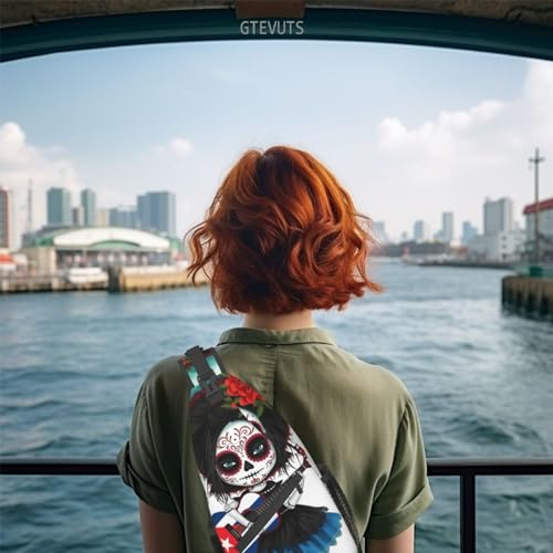 National Flag Sugar Skull Sling Bag Crossbody Chest Bag Unisex Sling Backpack Hiking Daypack Shoulder Bags,Small