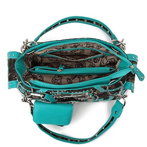 Camouflage Western Style Totes Studded Floral Handbag Tooled Leather Purse Country Women Shoulder Bag Zipper Wallet Set